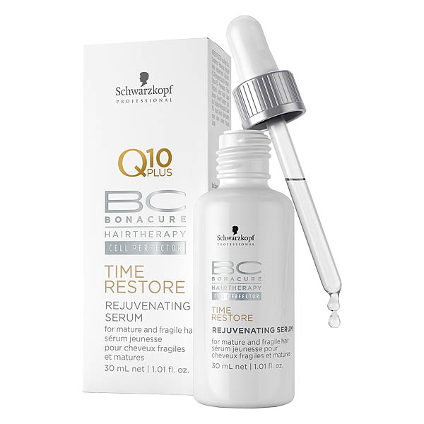 Time Restore Verjüngungs-Serum gibt reifem Haar sofortige Stärke und der Kopfhaut Elastizität zurück. Die Formel mit neuer Cell Perfector-Technologie, Q10 und Nutrifiller wirkt in der Haarzelle und kaschiert die Zeichen des Alterns.